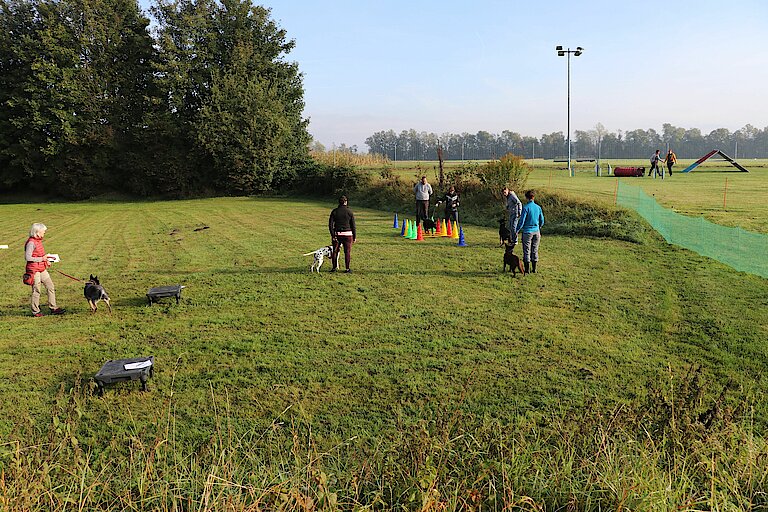 Am Samstag morgen starteten wir auf vier grossen Plätzen mit den Trainingseinheiten. Dank unseren Vereinsmitgliedern, welche sich als Trainer zur Verfügung stellten, war das Angebot vielseitig. Da war von Agility, Cavaletti, Tricks, JAD-Dogs, Longieren, Hoopers, Familienhunde bis zu Sporthunde-Check up und Vereinsmeisterschaft alles vorhanden. Auch Mantrailing wurde in der näheren Umgebung angeboten. Mit viel Begeisterung von Mensch und Hund war jeder bei der Sache.