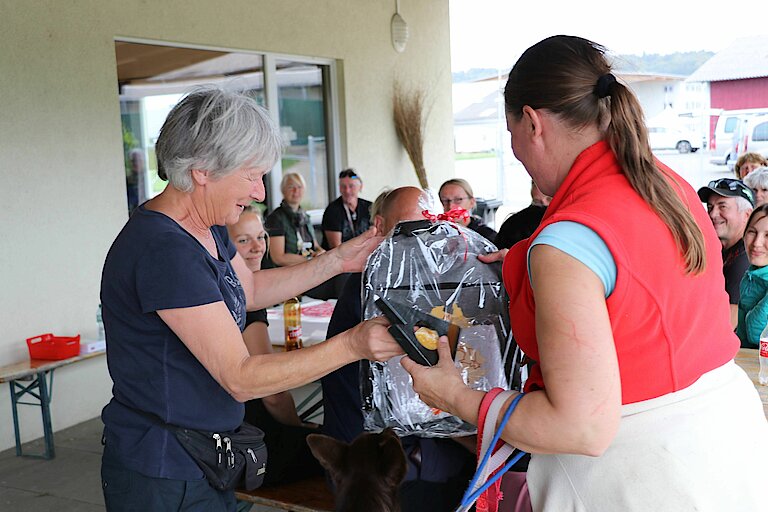 Beim Plauchparcours gibt es nur Gewinner und trotzdem gab es eine Rangverkündigung. Jeannette hatte wunderschönen Preise für die drei erst Platzierten vorbereitet. Gewonnen hat Jasmin Burri mit Mia, zweiter wurde Matthias Bickel mit Aroona und dritte Arlette Chresta mit Navajo.